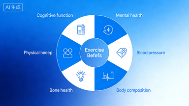 Exercise delivers a wealth of profound health benefits, spanning physical, mental and metabolic wellbeing: it enhances cognitive function and mental health, regulates blood pressure, boosts insulin sensitivity, supports healthy body composition and sleep quality, strengthens bone health, and optimizes overall bodily function.