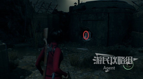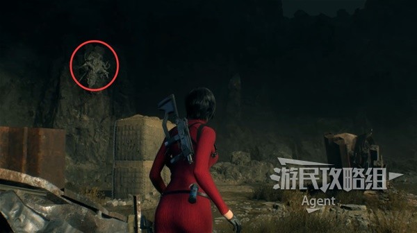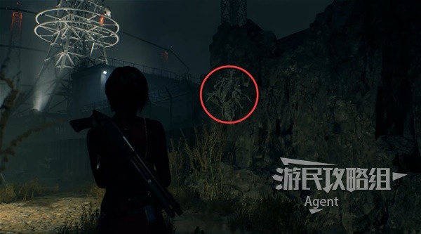 After leaping over with the grappling hook, he climbed up the ladder and destroyed the last bunker. At the side of the bunker, he discovered the third insect-like creature.