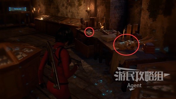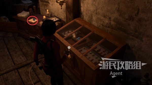 To unlock the lock, you can obtain the blue butterfly. There are some documents (specimen collector's notes) on the adjacent table.