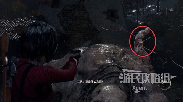 Crossing the bridge initiates the plot. Using the grappling hook, one can fly to the roof and fight the giant. If the giant collapses the house, supplies will fall from the ruins. After a parasite appears behind the giant, one focuses on attacking this parasite.