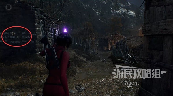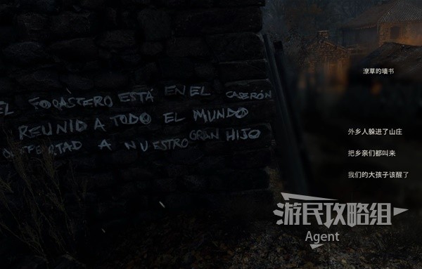 Back to the village square, on the left side of the door there is a scribbled wall inscription. Behind the house are merchants who are purchasing expansion kits for suitcases and recipes for explosive arrows.